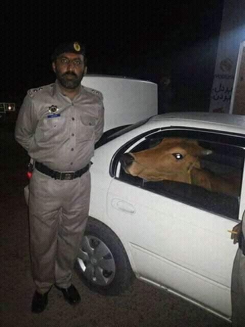 ¿Cuántas vacas caben en mí coche? Esto es lo que debió preguntarse este hombre paquistaní cuando decidió meter una vaca en su asiento trasero y un ternero en el maletero. El presunto ladrón no previó el tiempo que le costaría meter a los animales y pasada la euforia de conseguir meter la vaca como pasajero en la parte de atrás, fue interceptado por la policía mientras intentaba meter al segundo a presión en el maletero. Las fotos de su captura fueron distribuidas en Twitter, donde se han compartido más de mil veces.